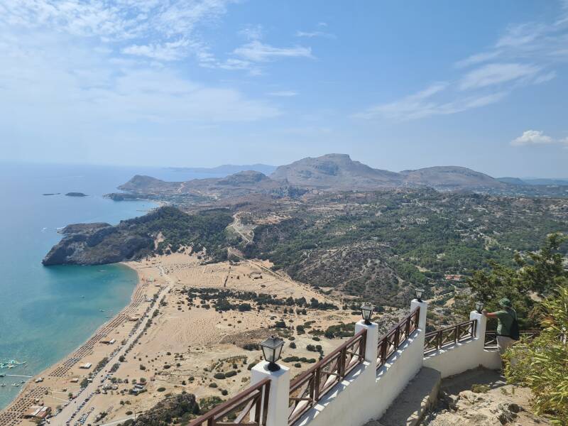 Tsambika Beach ligt aan de voet van de berg waarop het klooster van Tsambika zich bevindt. Het is een mooi strand met goud kleurig zand, fijn om verkoeling te vinden na de klim naar het klooster.